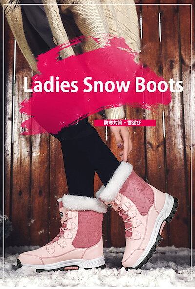 スノーブーツ レディース 黒 白 ピンク 雪靴 スノーシューズ 厚底ブーツ スニーカー 大人 防寒 ムートンブーツ 裏起毛 雪用ブーツ 保温 防水 軽量 滑り止め 防寒シューズ 撥水 ロングブーツ 雪