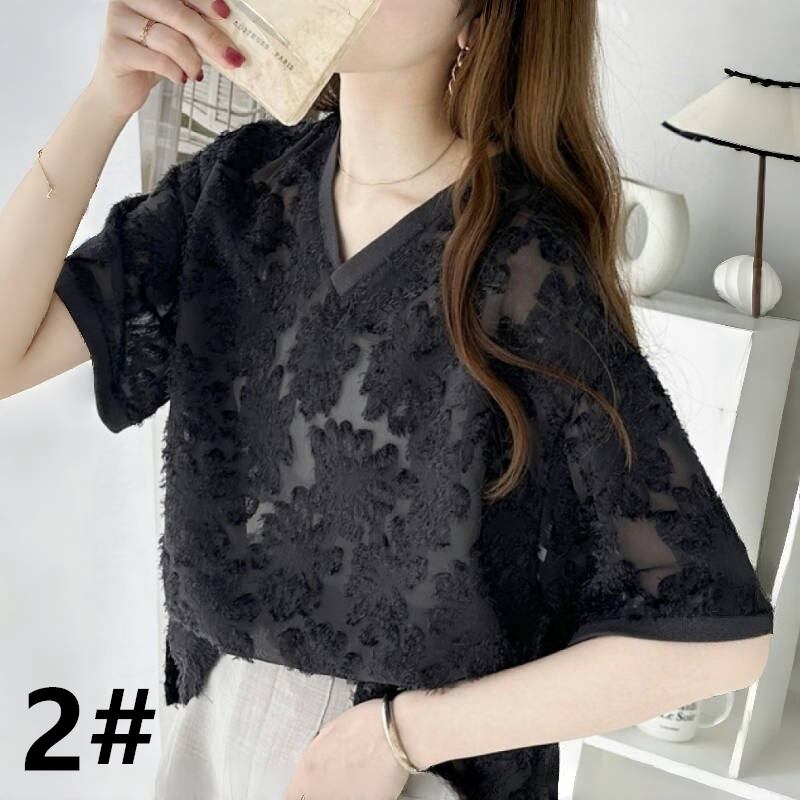 透かし レース トップス 半袖 Vネック レディース 通学 おしゃれ 着回しが利く ファッション