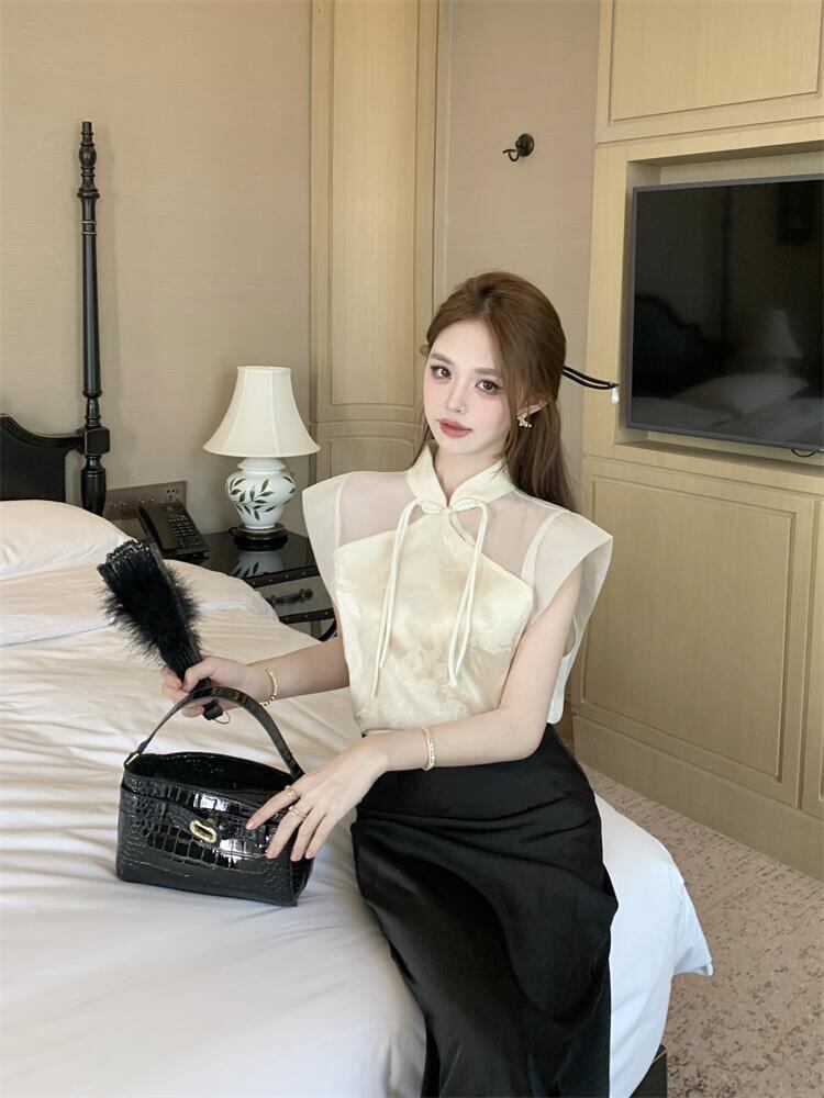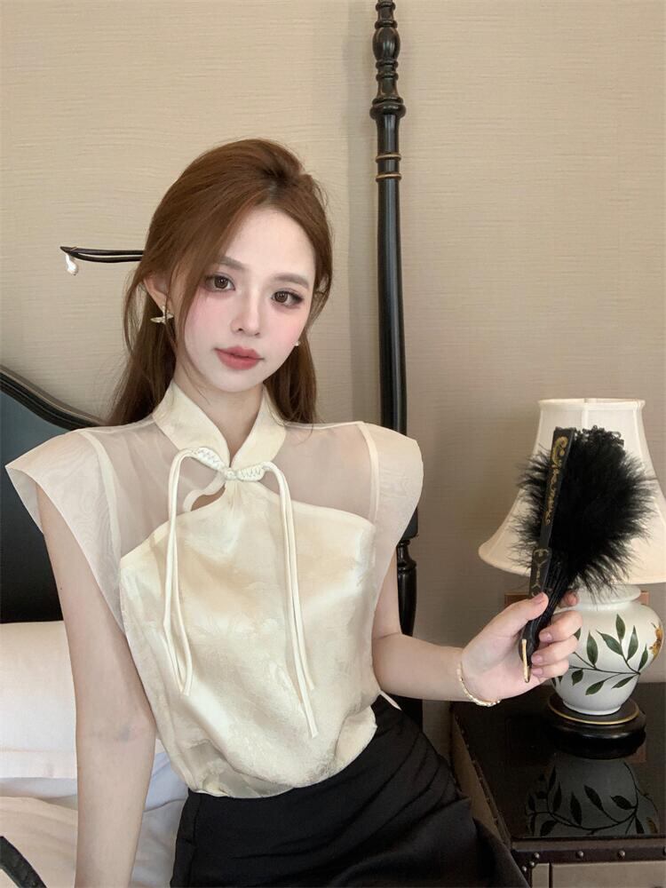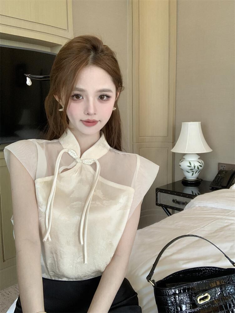 オシャレの幅が広がる 中国風 トップス エレガント 半袖 シフォンシャツ ジェントルスタイル 夏2024
