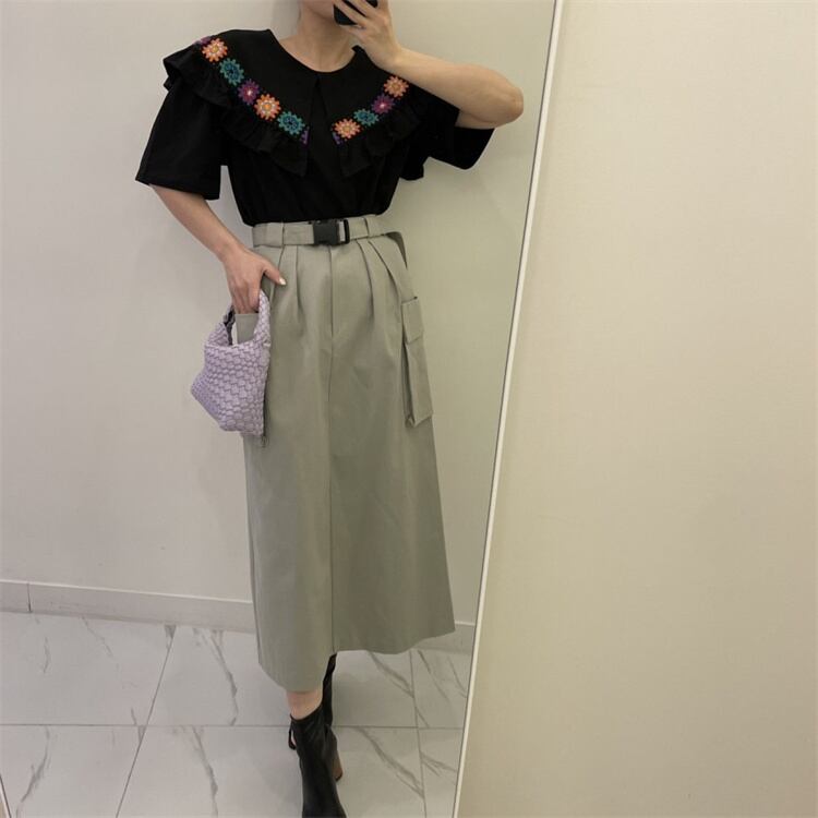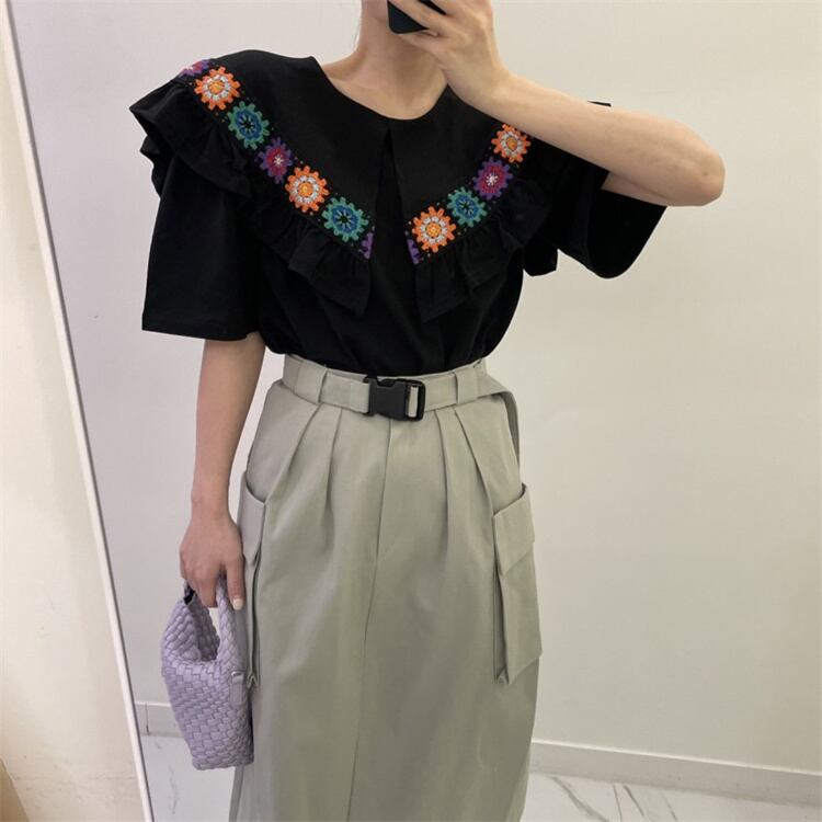 2024年の新商品更新 早い者勝ち 木の耳元 ラウンドネック 半袖 刺繍 シャツ 減齢 トップス 上着