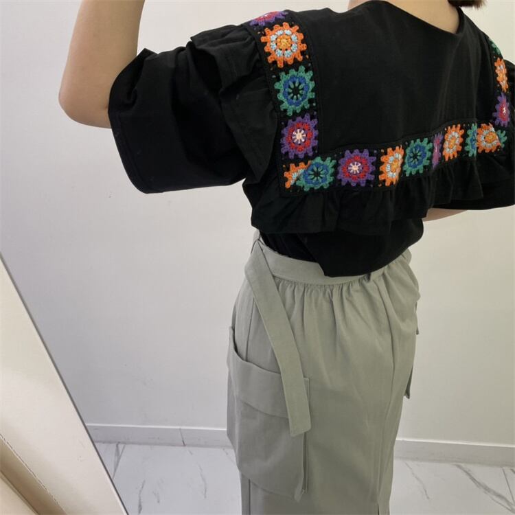 1枚でオシャレ見えが叶う 減齢 トップス 上着 ラウンドネック 半袖 刺繍 シャツ sweet系 レディース