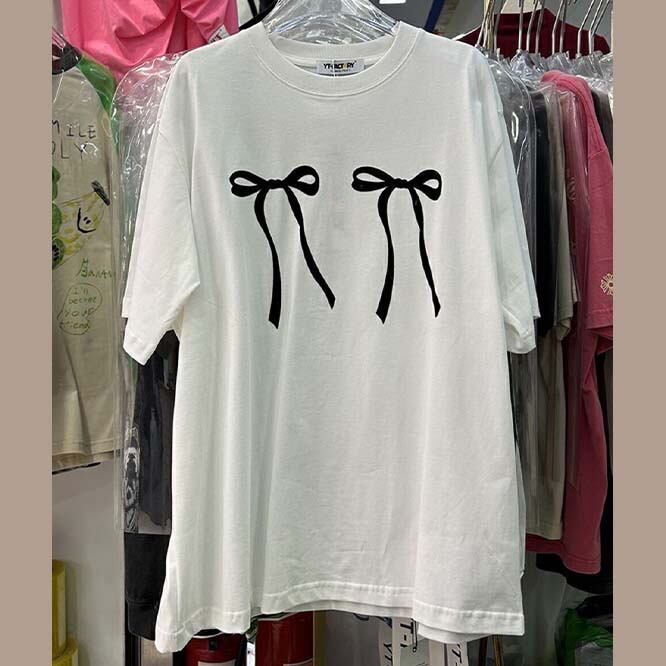 【2024春新作】韓国風レディース服 夏トップス 半袖Tシャツ 蝶結び おしゃれ 綺麗め 全3色