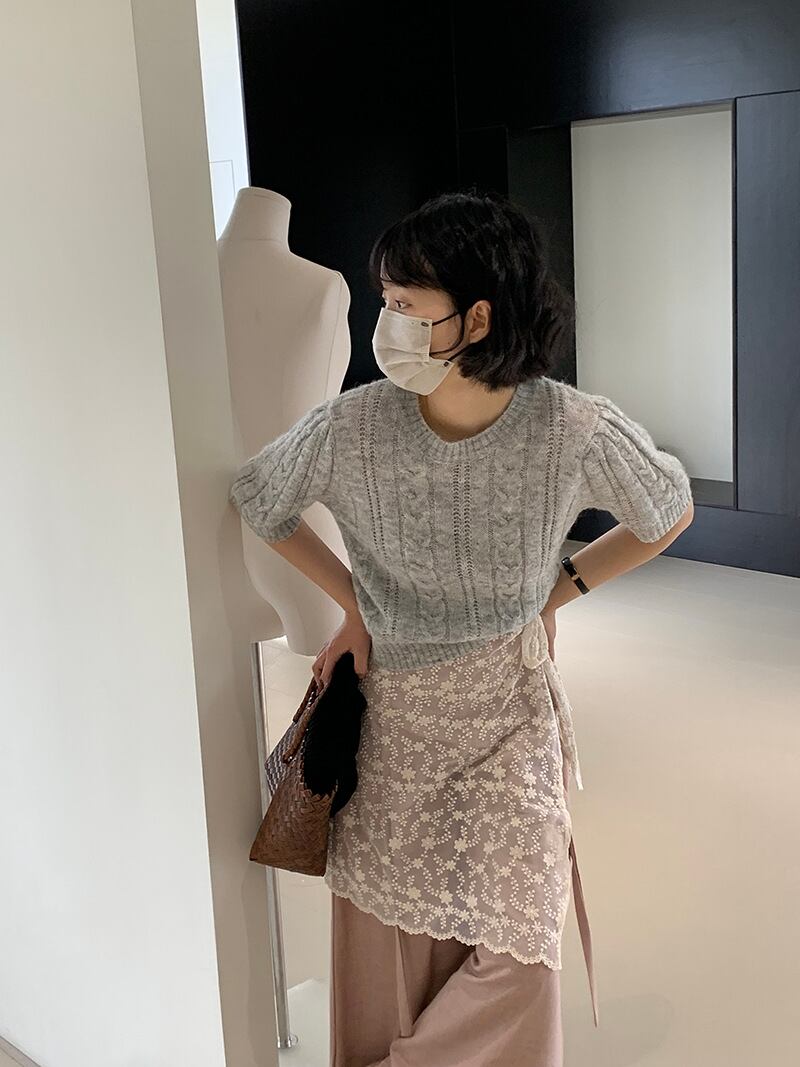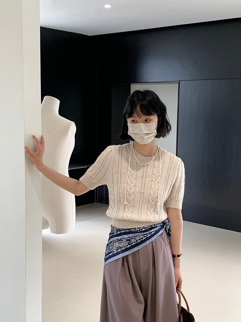 u23960 レディース トップス ニット 半袖 ラウンドネック 2024春新作 カジュア 着痩せ 3色 ショット丈