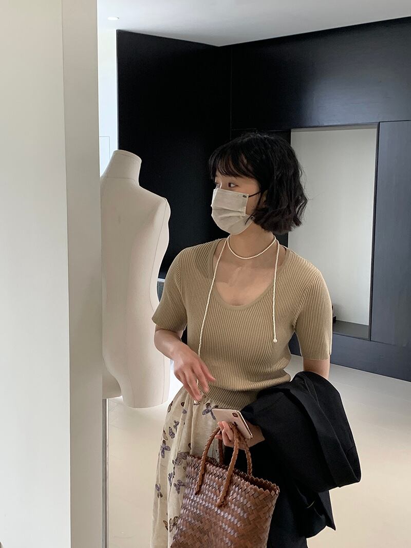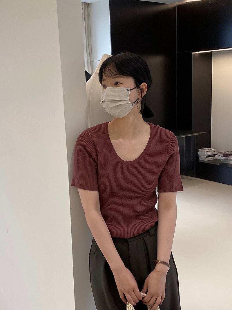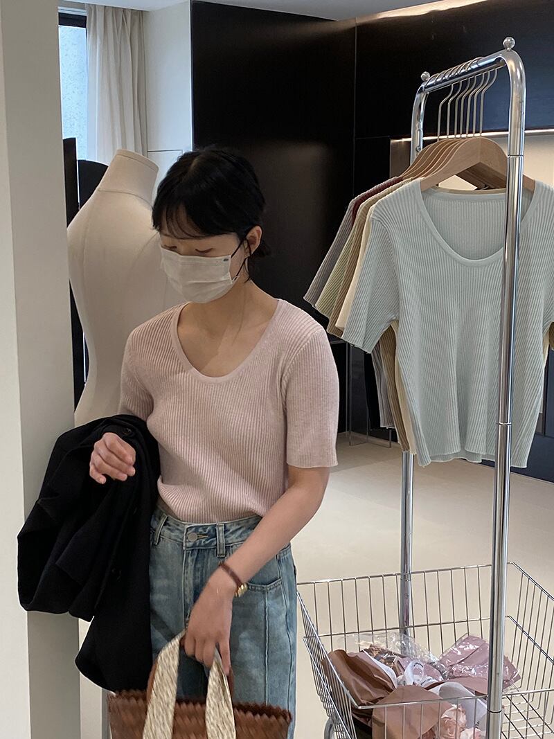 u23957 レディース トップス ニット 無地半袖 Uネック 2024春新作 カジュア 着痩せ 8色