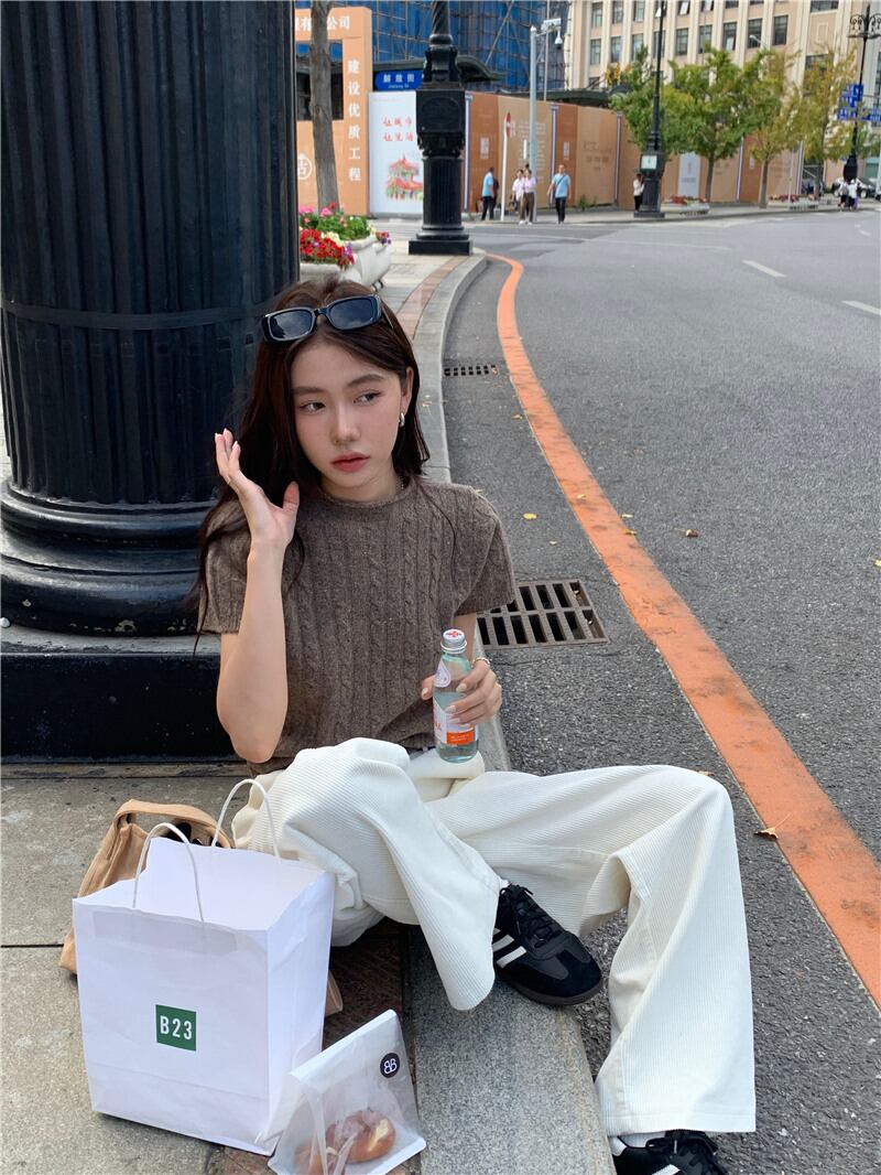 2023年秋冬INS 新作 ニット セーター 可愛い 半袖 トップス シャツ ブラウス