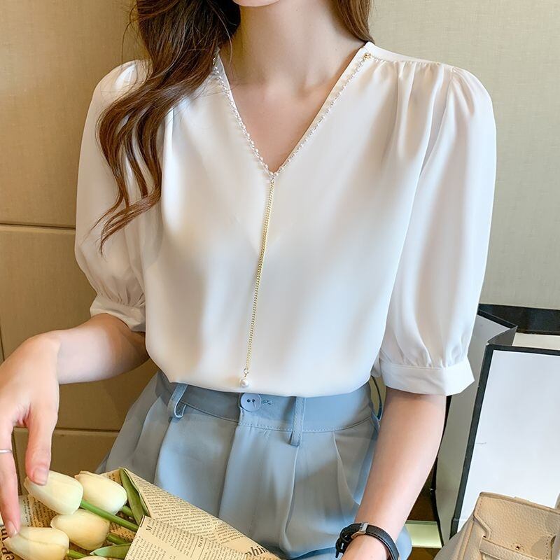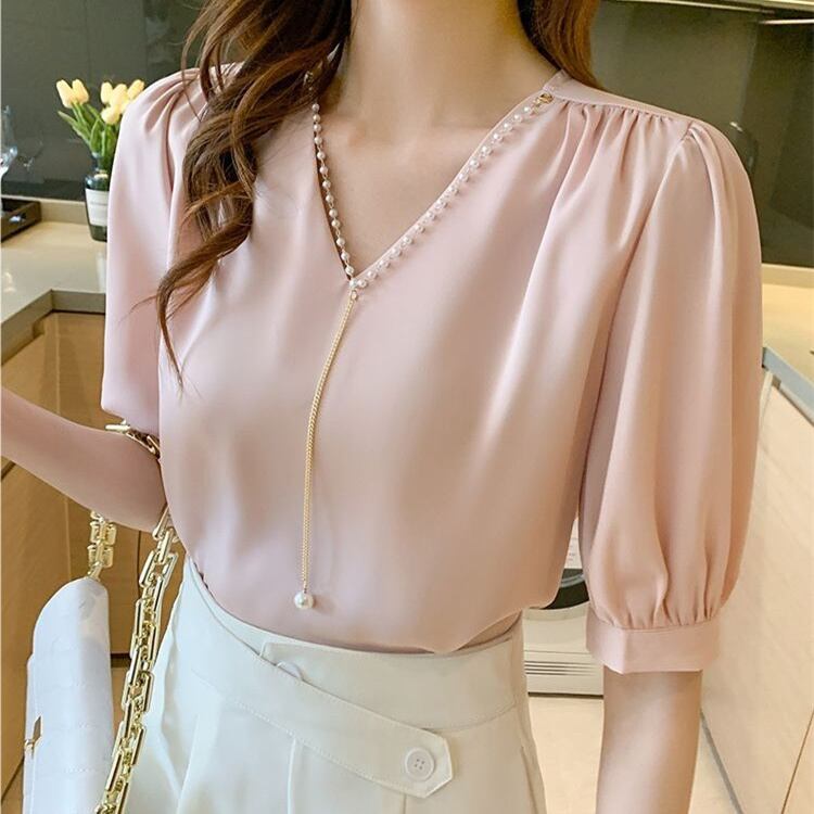 新作 トップス 半袖 Vネック 体型カバー 着回し 上品 レディース