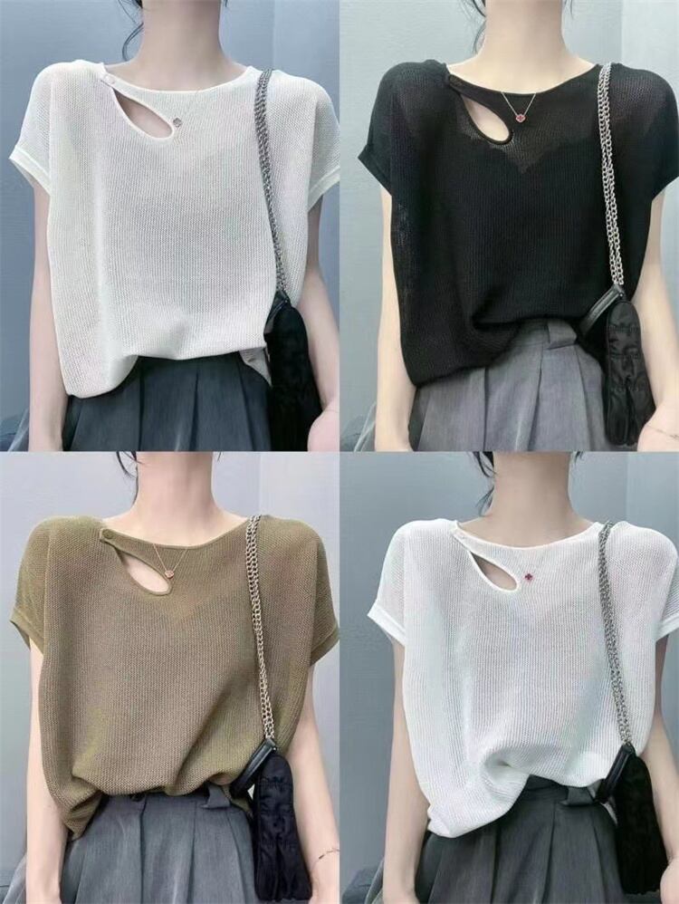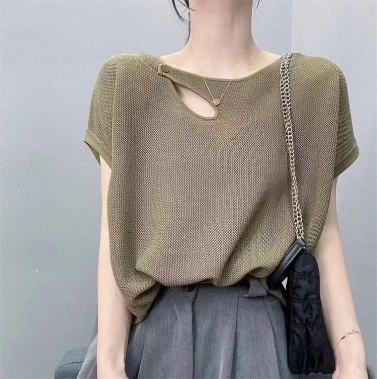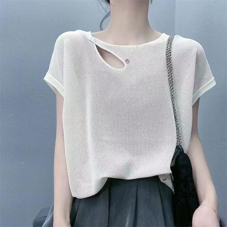 買って良かったです 透かし彫り 薄い 気質 ニットトップス ゆったりする 半袖トップス 上着