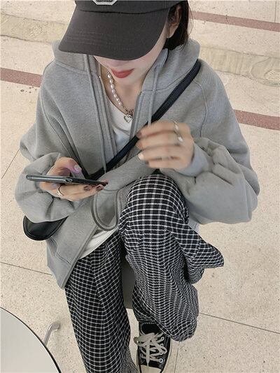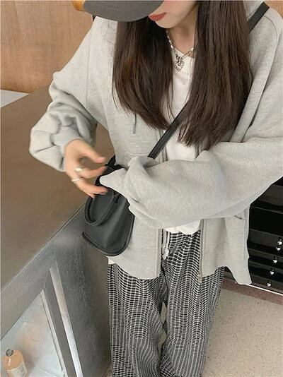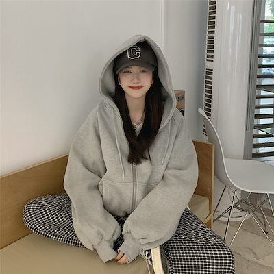新作春服 裹起毛 ジップアップ 韓国 パーカー フード 羽織り スタイルアップ 女 カーディガン っぽ カジュアル きれいめ ゆったりゆったり カジュアル ストリート スリーブ 通学