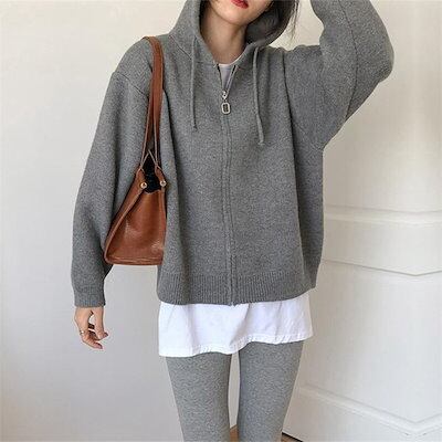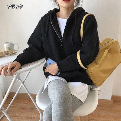 韓国 パーカー 韓国 スウェット ニット レディース ジップアップ ニット韓国 パーカー セーター トップス カーディガン アウター 羽織り 長袖 お洒落 フード付き韓国 パーカー