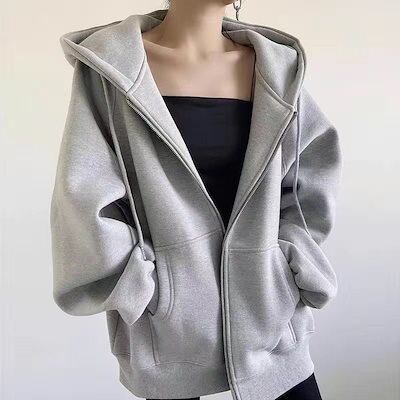 韓国ファッション マウンテンパーカーアメリカンファスナー純色コットンカーディガンレディース春秋新作高級感シンプルコート