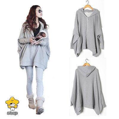 春 秋 冬 ドルマン スリーブ カットソー 長袖 ジップアップ パーカー 無地 レディース