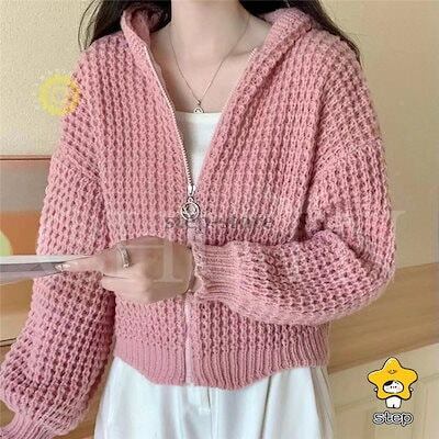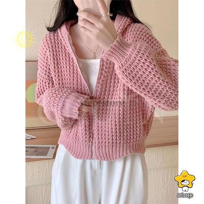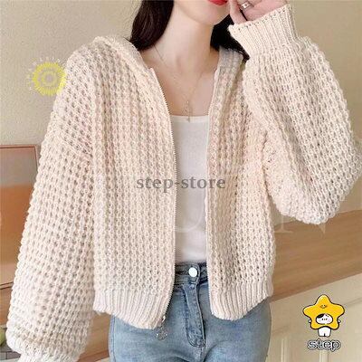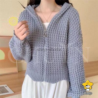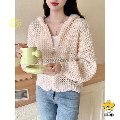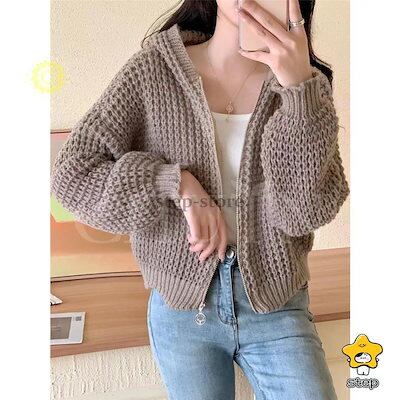 パーカー ニットパーカー レディース 長袖 秋 秋服 カーディガン トップス 春秋冬 フード付き ジッパー 羽織着痩せ無地ショート丈カジュアルおしゃれ韓国風