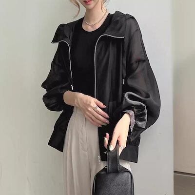 2024 UVカット パーカー UVパーカー レディース マウンテンパーカー フード付き ジップアップ 春 夏 羽織 長袖 撥水加工 シアー トップス 接触冷感 透け感 パーカー おしゃれ 紫外線