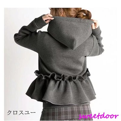 フリルパーカー パーカー スウェット風パーカー レディース 春 秋 冬 長袖 コート アウター トップス 大人可愛い フード付 フリルブルゾン フラワー