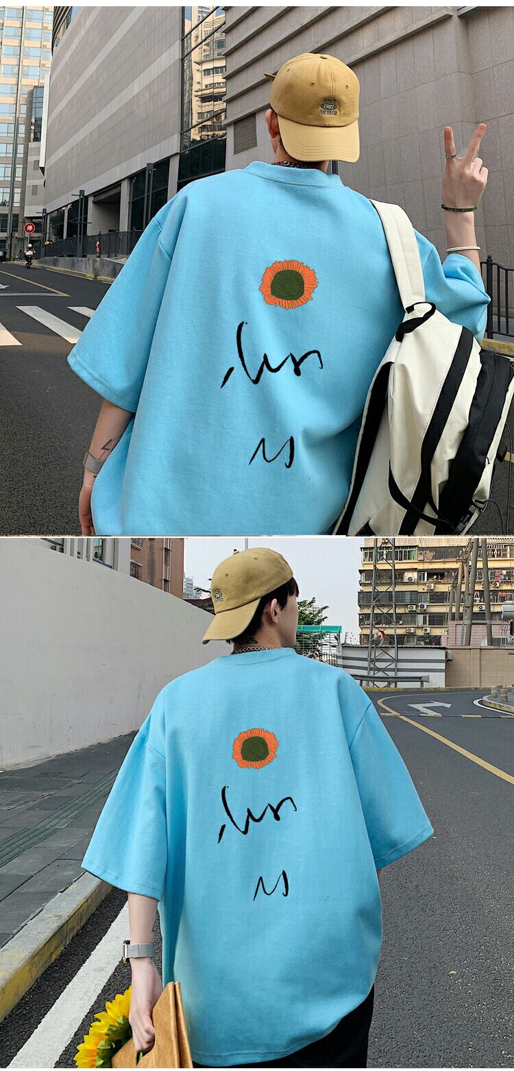ロゴTシャツ8色半袖トップスカットソー花柄フラワーひまわりカラフル大きいサイズビッグダンス衣装ヒップ