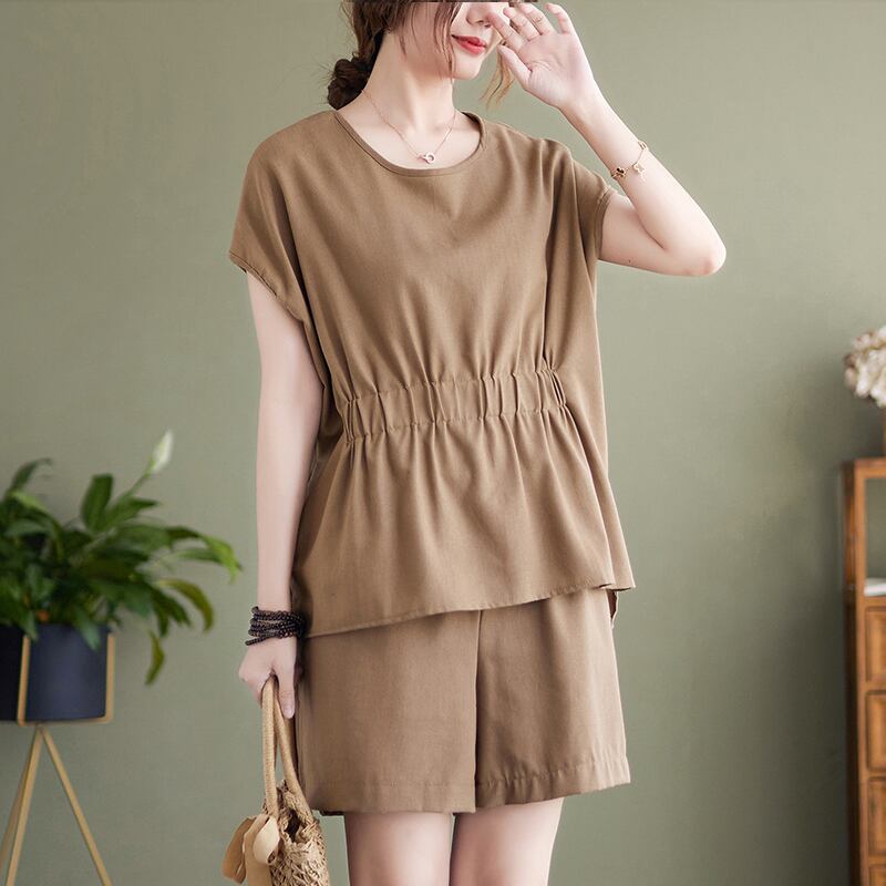 初回送料無料 風半袖ショートパンツとカジュアルトップス2点セット 上下2点セット
