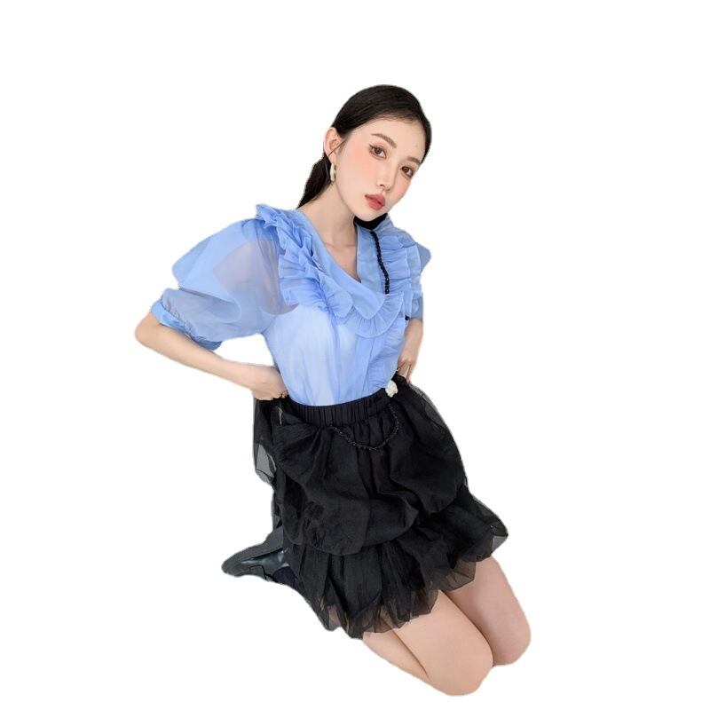 初回送料無料 新作バブルスリーブ半袖Vネックトップス レディースファション商品 人気商品上着