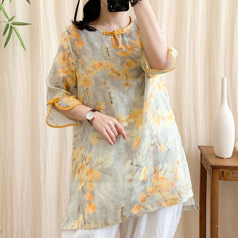 初回送料無料夏の新しいトップスミドル丈シャツゆったり半袖コットンリネン人気商品AW8165-1