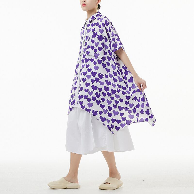 初回送料無料サマー半袖薄い不規則プリントカーディガンフローラルシャツトップス人気商品