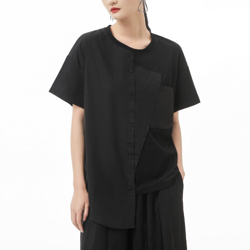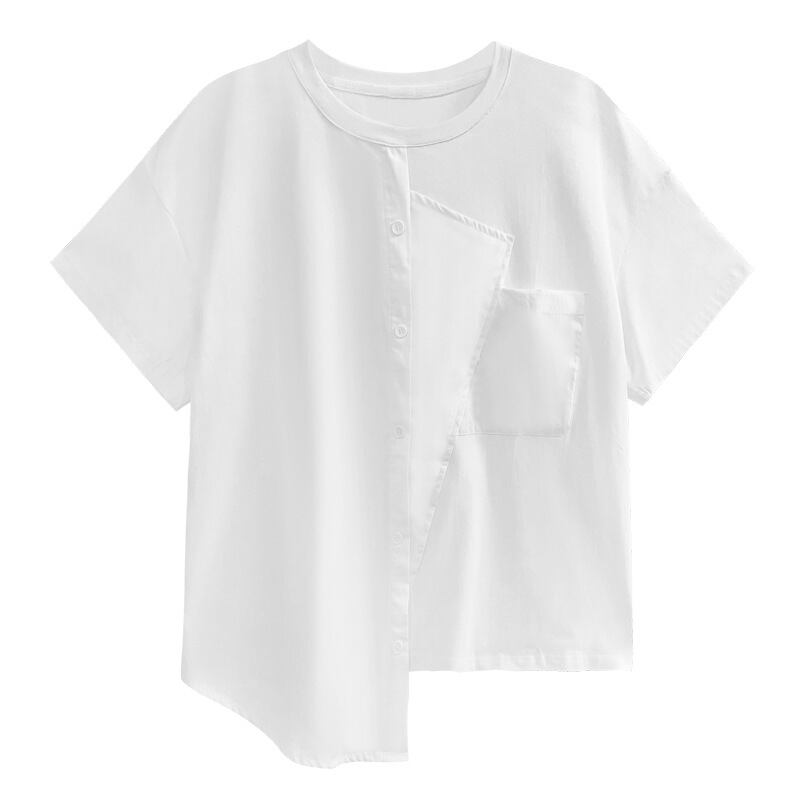 初回送料無料夏の半袖シャツトップススプライシング不規則なTシャツブラウスファッション