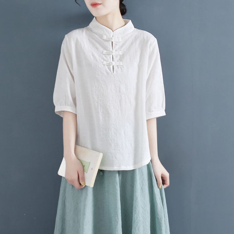 初回送料無料綿とリネン半袖シャツゆったりサイズトップス人気商品ファッションブラウス