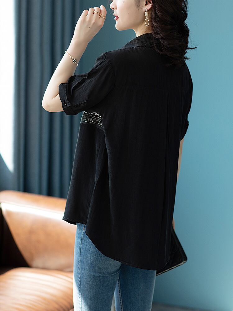 初回送料無料レディースサマースリムゆったり半袖ステッチシャツトップスブラウス人気商品