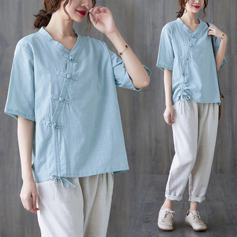 初回送料無料ラージサイズコットンリネンゆったり半袖シャツTシャツトップスブラウス