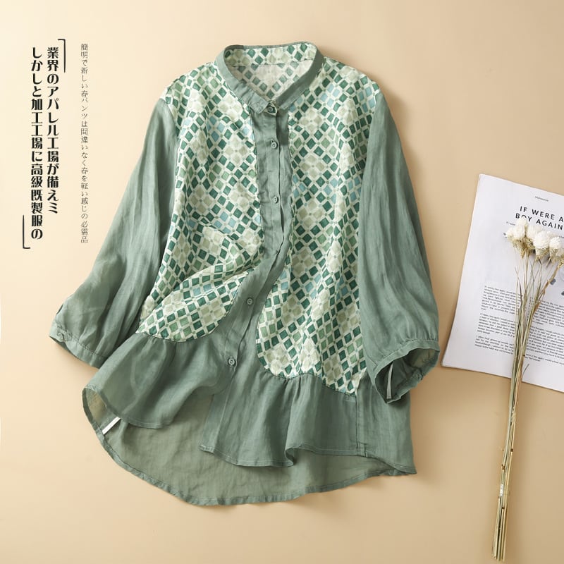 初回送料無料コットンリネンプリント七分袖Tシャツレディース半袖トップスブラウス人気商品