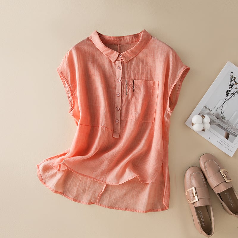 初回送料無料サマー半袖ラージサイズコットンリネンシャツレディーストップスブラウス
