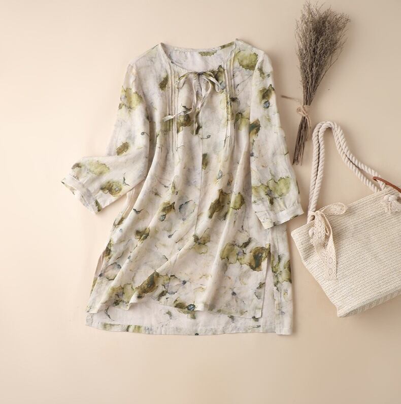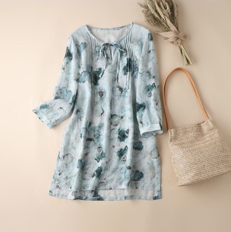 初回送料無料サマー半袖軽量シャツプリント花柄七分袖レディーストップスファッション