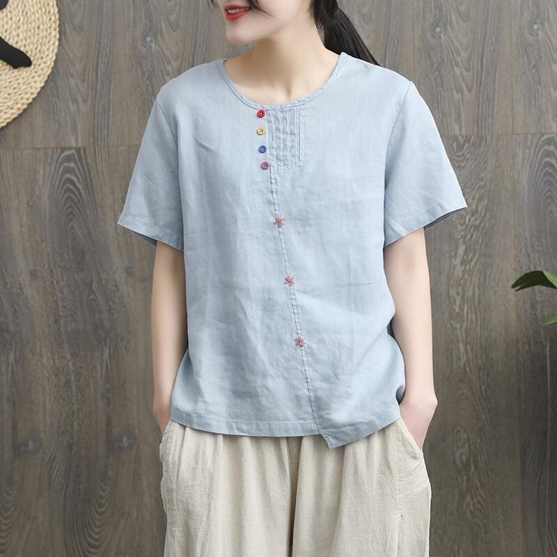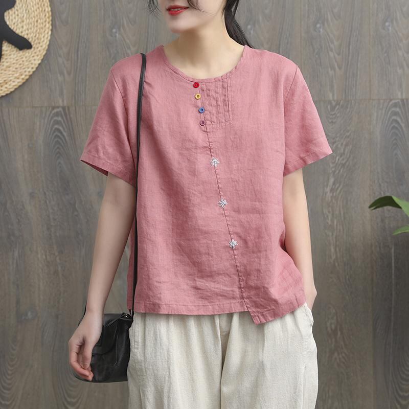 初回送料無料カジュアルトップスゆったり半袖Tシャツコットンリネンシャツファッションおしゃれ