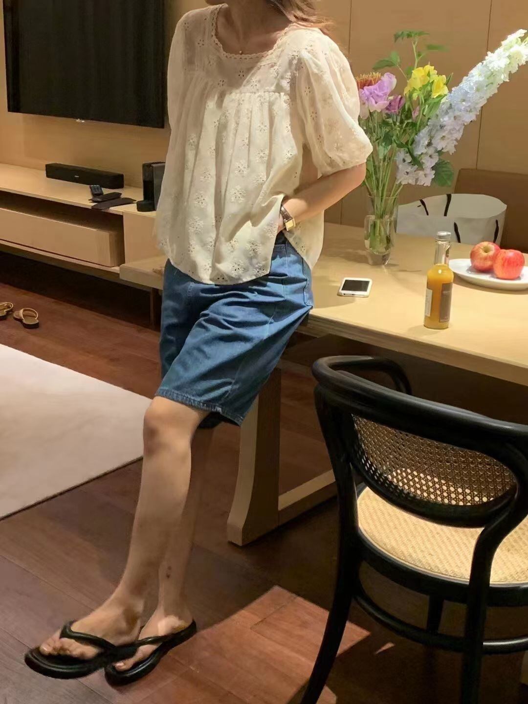 初回送料無料レディースシャツ半袖トップススクエアネックパフスリーブおしゃれ