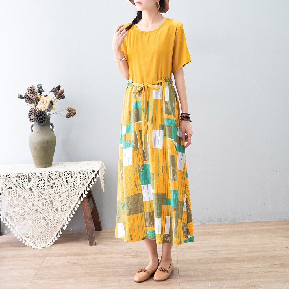 初回送料無料夏新作トップスワンピース 綿リネンドレス半袖ファッションワンピース