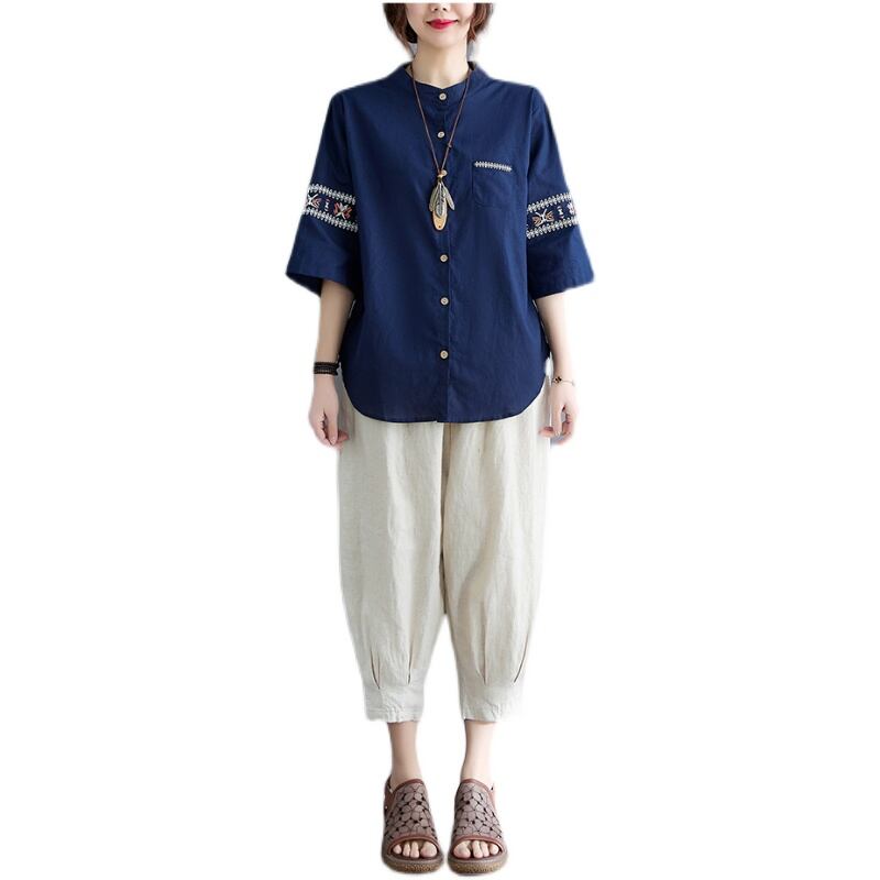 初回送料無料新作ラージサイズの半袖シャツの刺?レディーストップスブラウス