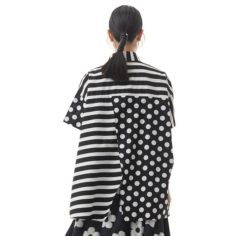 初回送料無料韓国ファッションブラウス半袖ルーズトップストライプステッチゆったり