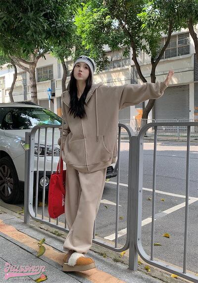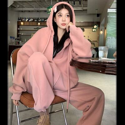 上下別売り 選べる2タイプ 薄手 厚手 裹起毛 長袖シャツ ロングパンツ レディース かわいい シルエット 2点セット フード付き風 きれいめ サイズ 秋冬 ゆったりファッションダブル加工大人可愛い