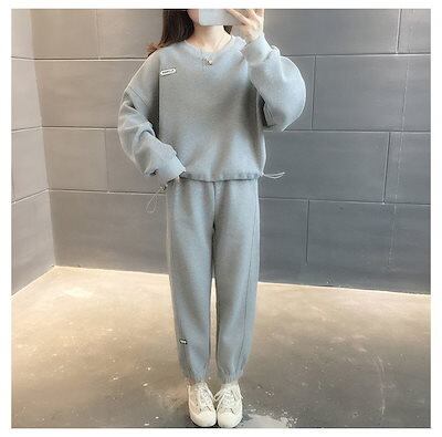 2024新作 カジュアル セットアップ レディース 裏起毛 厚手 パーカー スウェット 運動 ワイドパンツ 二点セット 着痩せ 大きいサイズ 裏起毛ファッション7