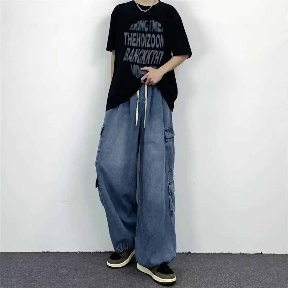 男性と女性のためのヒップホップジーンズ,ワイドレッグカーゴパンツ,ストレート,ルーズフィット,ラージポケット,トレンディ,フォーシーズン,2022 y2k ボトムス T240901102952_02