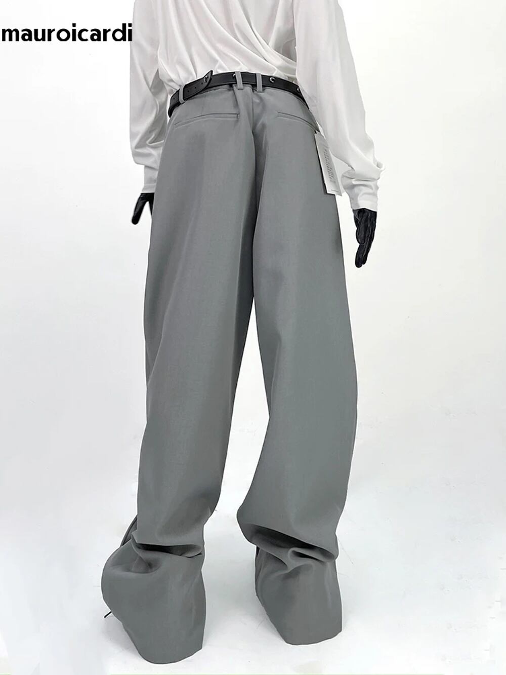 Marouicari-メンズフローリーバギーワイドレッグパンツ、エクストラロング、ブラック、ルーズ、カジュアル、ソフト、グレー、ファッション衣類、春、2024 y2k ボトムス T240901103054_01