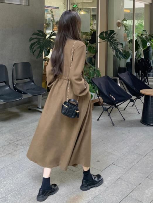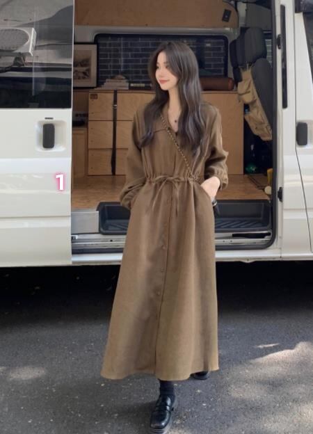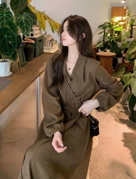 2024春秋新作 女 レディースハイウエスト 長袖 ロング ワンピース 台型スカート