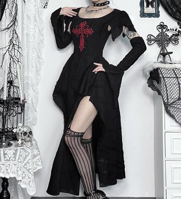 2024春秋新作 女 レディースハイウエスト 半袖 手袋付け ロング ワンピース 台型スカート