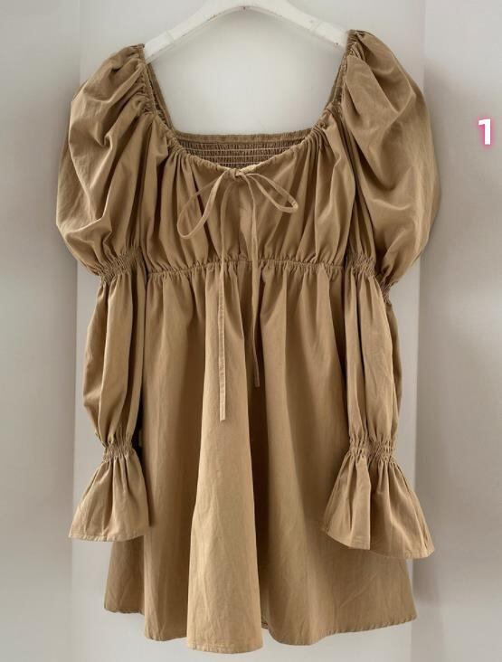 2024春秋新作 女 レディース ハイウエスト 長袖 無地 ミニ ワンピース ドレス 台型スカート