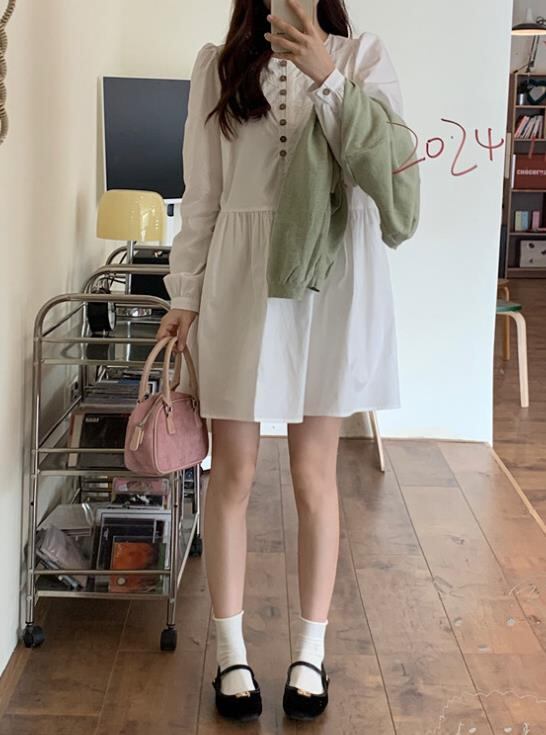 2024春秋新作 女 レディース ハイウエスト 長袖 ミニ ワンピース ドレス 台型スカート セット