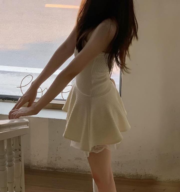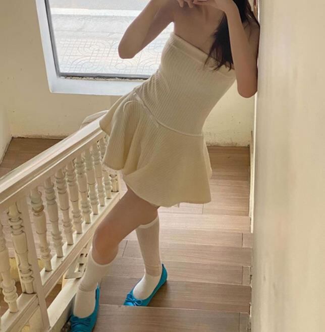 2024春秋新作 女 レディース ハイウエスト 袖なし ニット ミニ ワンピース ドレス 台型スカート