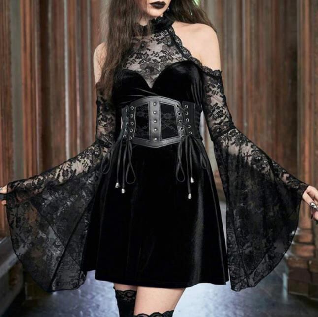 2024春秋新作 女 レディース ハイウエスト 長袖 レース ミニ ワンピース ドレス 台型スカート