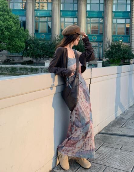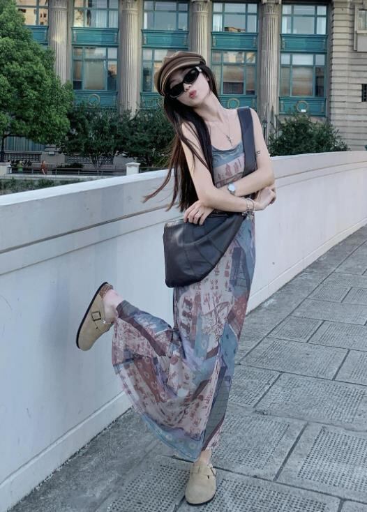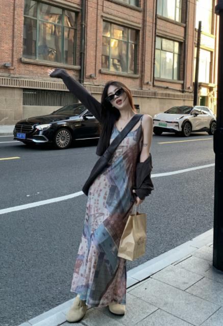 2024春秋新作 女 レディース 袖なし 吊りスカート ロング ワンピース 台型スカート セット