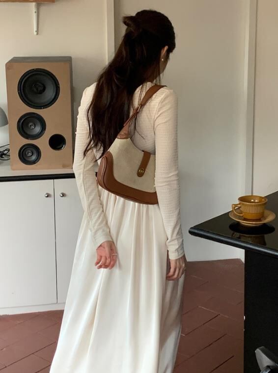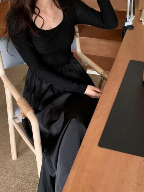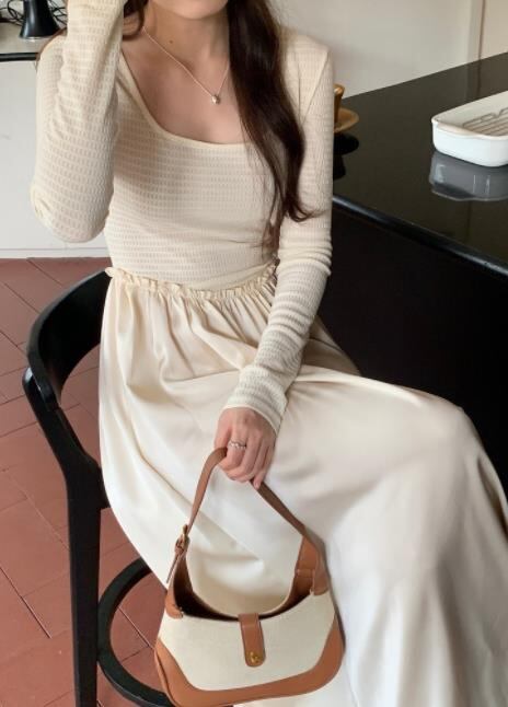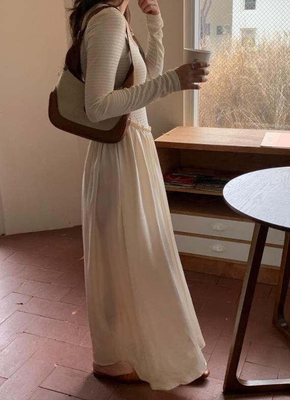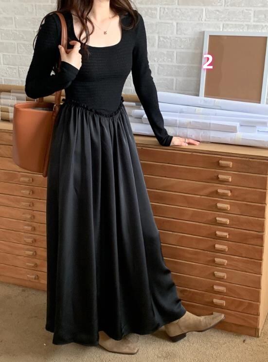 2024春秋新作 女 レディース ハイウエスト 長袖 ロング ワンピース 台型スカート