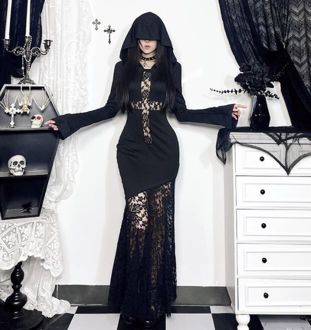 2024春秋新作 女 レディース ハイウエスト 長袖 帽子付け ロング ワンピース 台型スカート