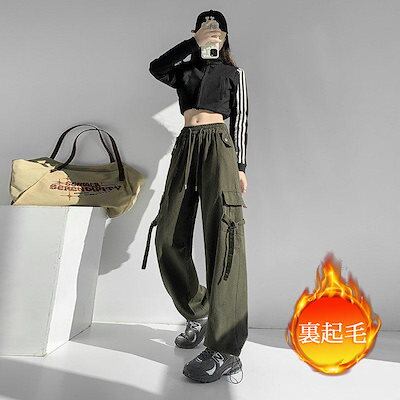 高級な質感 カーゴパンツ レディース 裏起毛 ワークパンツ ハイウエスト 秋冬 ロング ダンスパンツ ボトムス カーゴ カジュアル ゆったり 着痩せ おしゃれ