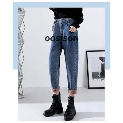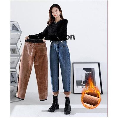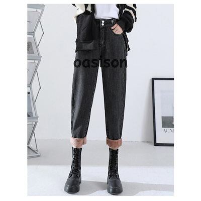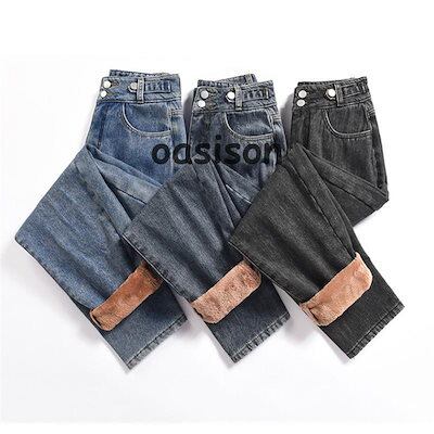 大人の魅力 デニムパンツ レディース ジーンズ 裏起毛 裏ボア ワイドパンツ 厚手 ハイウエスト 秋冬 ジーパン 保温 防寒 暖かい ロングパンツ ゆったり 通勤